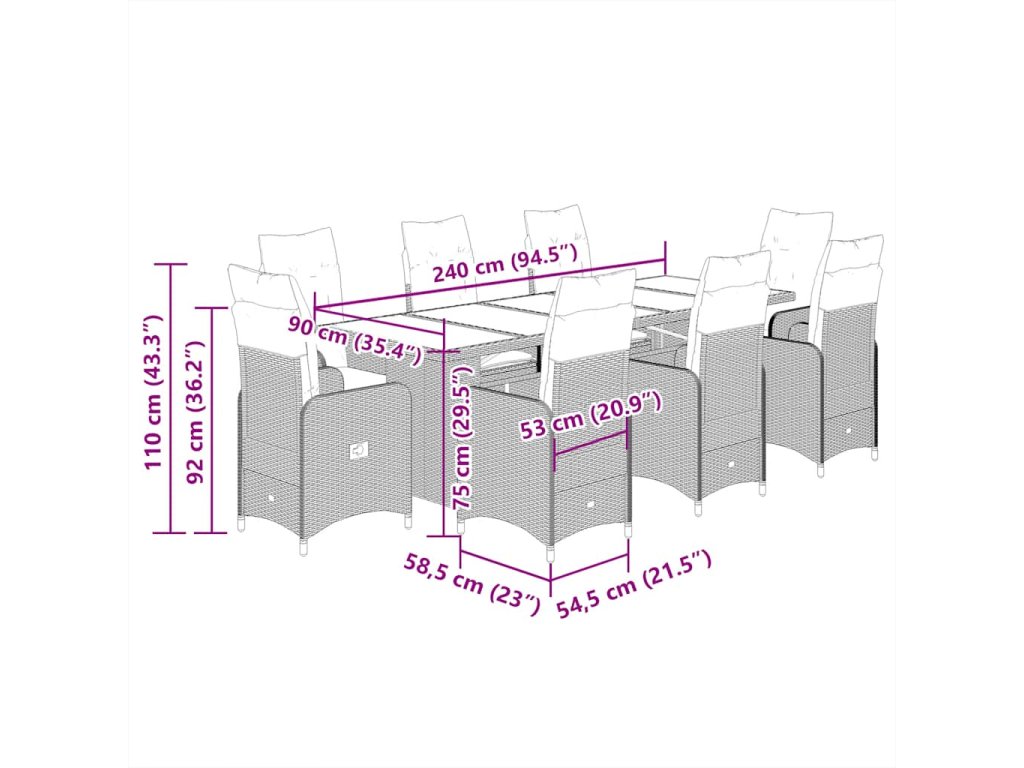 - Pohodlné sezení: Tento venkovní nábytek se silně polstrovanými poduškami a polštáři nabízí pohodlné sezení.