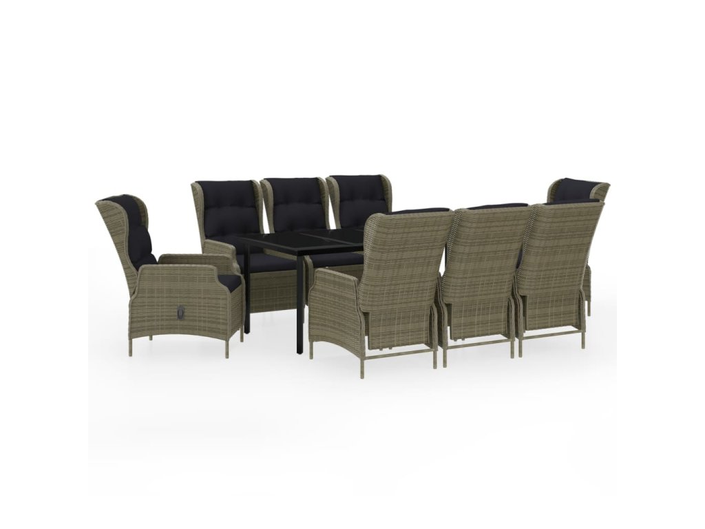 Praktický zahradní jídelní set má ocelový rám, takže je pevný a má dlouhou životnost. Polohovací židle jsou vyrobené z voděodolného PE ratanu, který nevyžaduje žádnou údržbu, hodí se proto skvěle k venkovnímu použití. Hustě polstrované podušky vám při stolování poskytnou maximální pohodlí. Potah podušky je opatřený zipem, lze ho tedy stáhnout a vyprat. Pomocí mechanismu s plynovým pístem si navíc snadno přizpůsobíte opěradlo křesla podle vlastních potřeb. Stisknutím tlačítka na boku ho sklopíte do té nejpohodlnější pozice. Hladká skleněná stolní deska, kterou jednoduše očistíte vlhkým hadříkem, je ideální k podávání jídla a pití nebo k vystavování různých dekorativních předmětů.