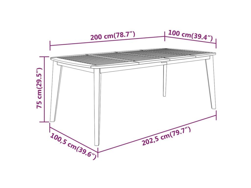 - Celkové rozměry stolu: 202,5 x 100,5 x 75 cm (D x Š x V)