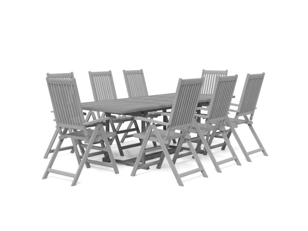 - Prvotřídní materiál: Zahradní jídelní set je vyrobený z masivní akácie, což je tropické tvrdé dřevo, které je odolné a výborně vzdoruje povětrnostním vlivům, takže vám vydrží sloužit po dlouhá léta. Olejovaný povrch se navíc snadno čistí vlhkým hadříkem.
