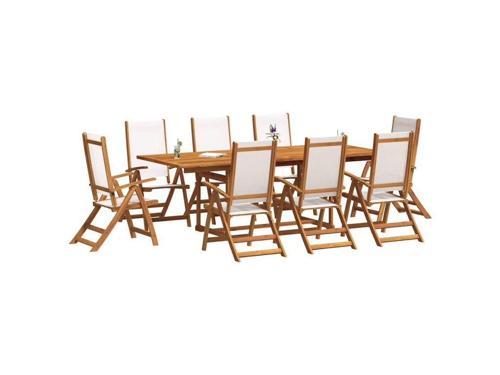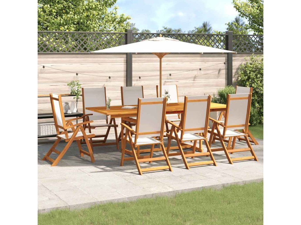 - Masivní akáciové dřevo: Venkovní jídelní set je vyrobený z masivního akáciového dřeva. Masivní akáciové dřevo je nádherný přírodní materiál. Akáciové dřevo je tropické tvrdé dřevo, které má hustou strukturu a je pevné a odolné.