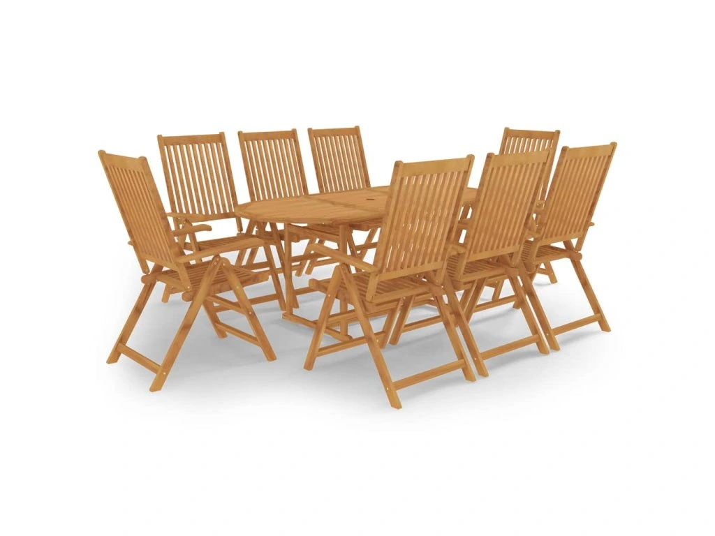 Sestava má překrásnou povrchovou úpravu, která dřevu dodává hřejivý odstín. Ve stolu se nachází otvor na slunečník, abyste se mohli chránit před sluncem. Opěradla židlí lze nastavit do 7 poloh, takže vám nic nebrání najít si tu nejpohodlnější pozici. Židle mají navíc skládací design, aby vám zbytečně nepřekážely, když je zrovna nepoužíváte. Lehká konstrukce usnadňuje jejich přesouvání. Celá sada nábytku vám poskytne maximální pohodlí a zpříjemní vám čas strávený s vaší rodinou a přáteli. K očištění vám přitom postačí navlhčený hadřík.