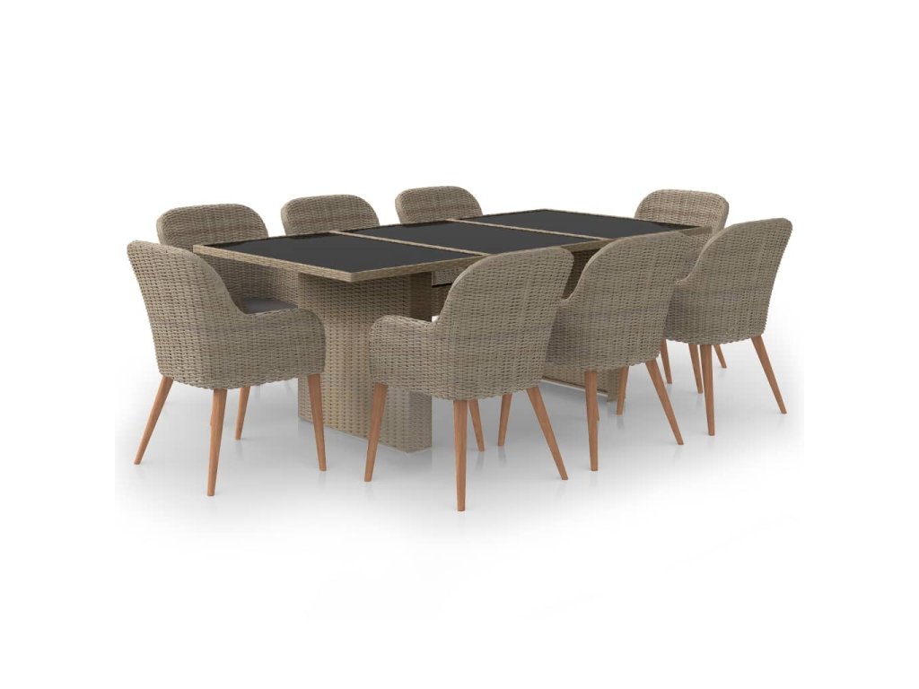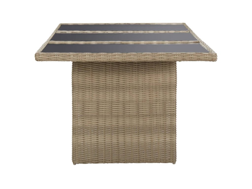 Sada zahradního nábytku disponuje pevným ocelovým rámem s práškovým nástřikem, je tudíž velmi stabilní a odolná. Voděodolný PE ratan, ze kterého je jídelní set vyrobený, se snadno čistí, je pevný a vhodný pro každodenní venkovní použití. Skleněnou stolní desku jednoduše očistíte navlhčeným hadříkem. Nedílnou součástí sady jsou také obzvláště pohodlné podušky na sedáky. Potahy těchto podušek jsou nenáročné na údržbu a můžete je snadno stáhnout a vyprat.