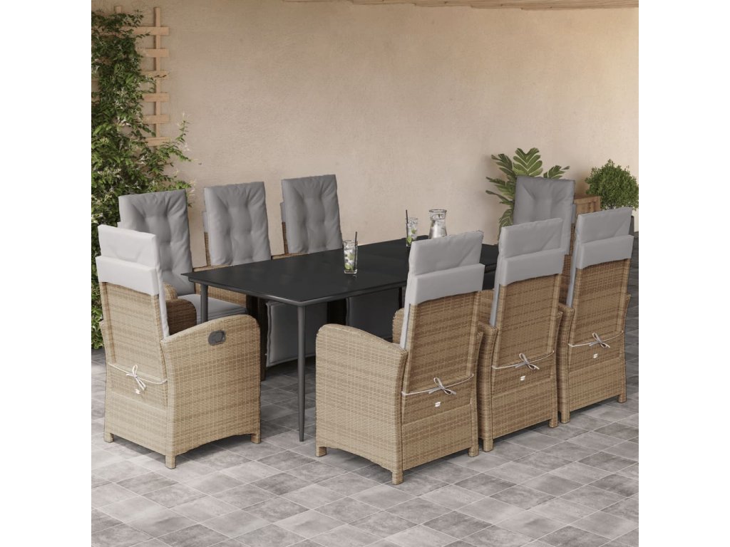 - Materiál: PE ratan, práškově lakovaná ocel, tvrzené sklo