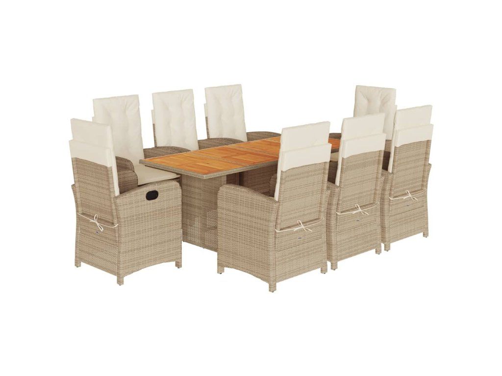 - Materiál: PE ratan, práškově lakovaná ocel, masivní akáciové dřevo s olejovou povrchovou úpravou