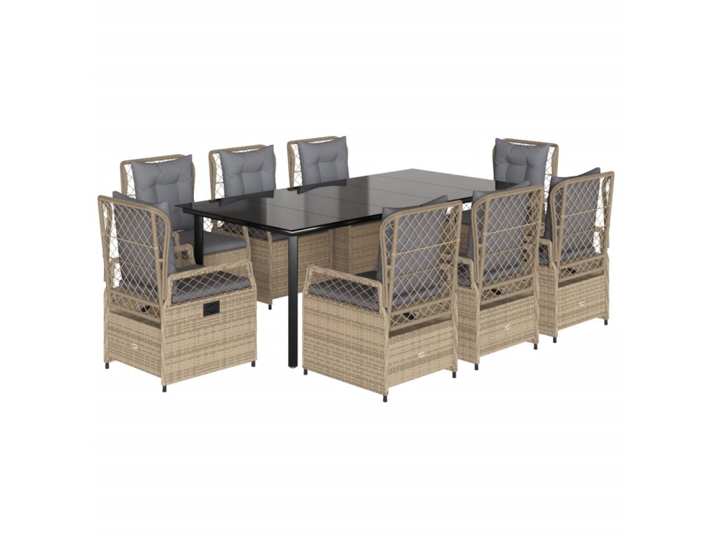 - Pohodlné sezení: Tento venkovní nábytek se silně polstrovanými poduškami a polštáři nabízí pohodlné sezení.
