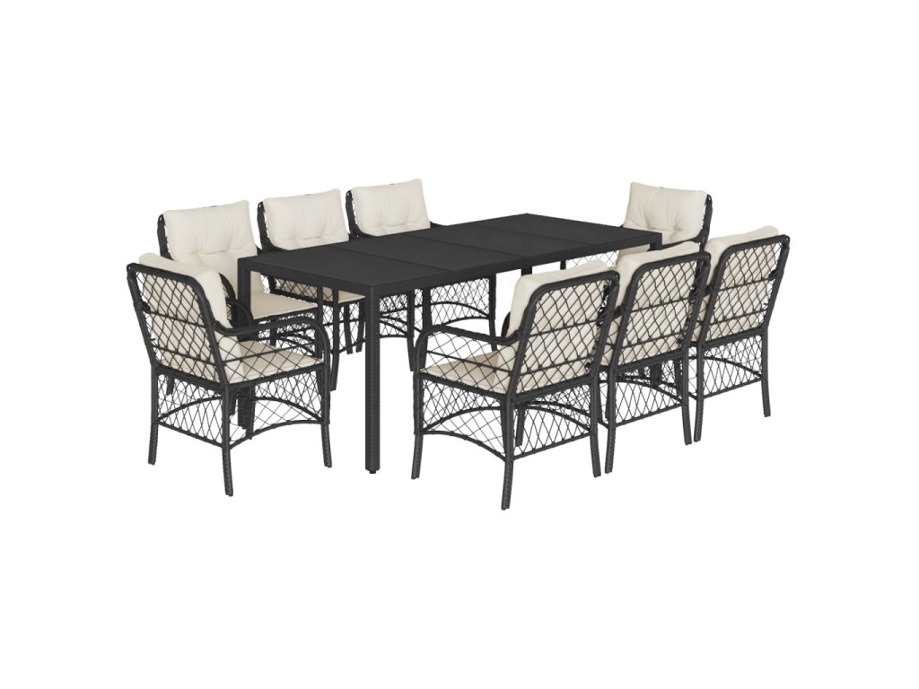 - Materiál: PE ratan, práškově lakovaná ocel, tvrzené sklo