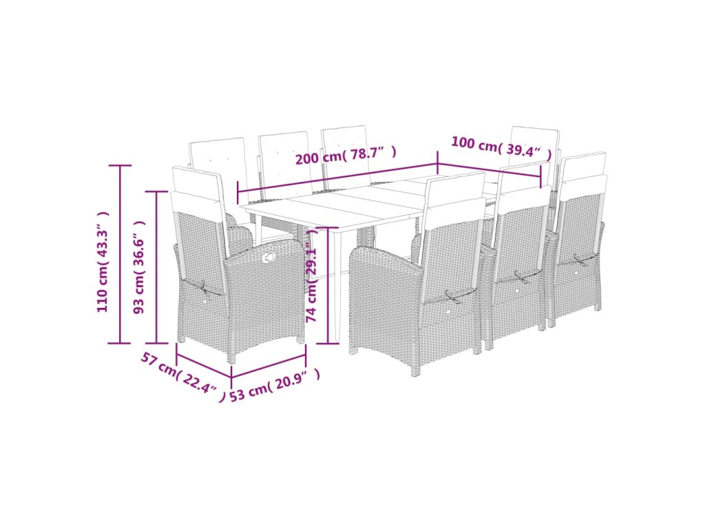 - Pohodlné sezení: Tento venkovní nábytek se silně polstrovanými poduškami a polštáři nabízí pohodlné sezení.