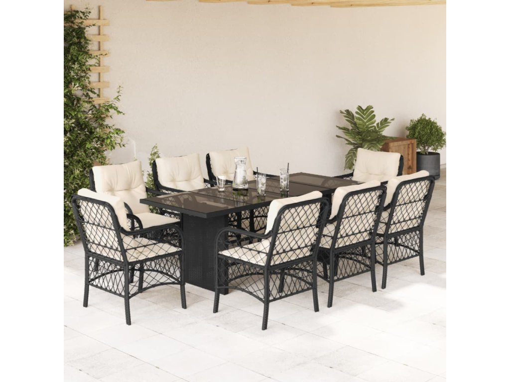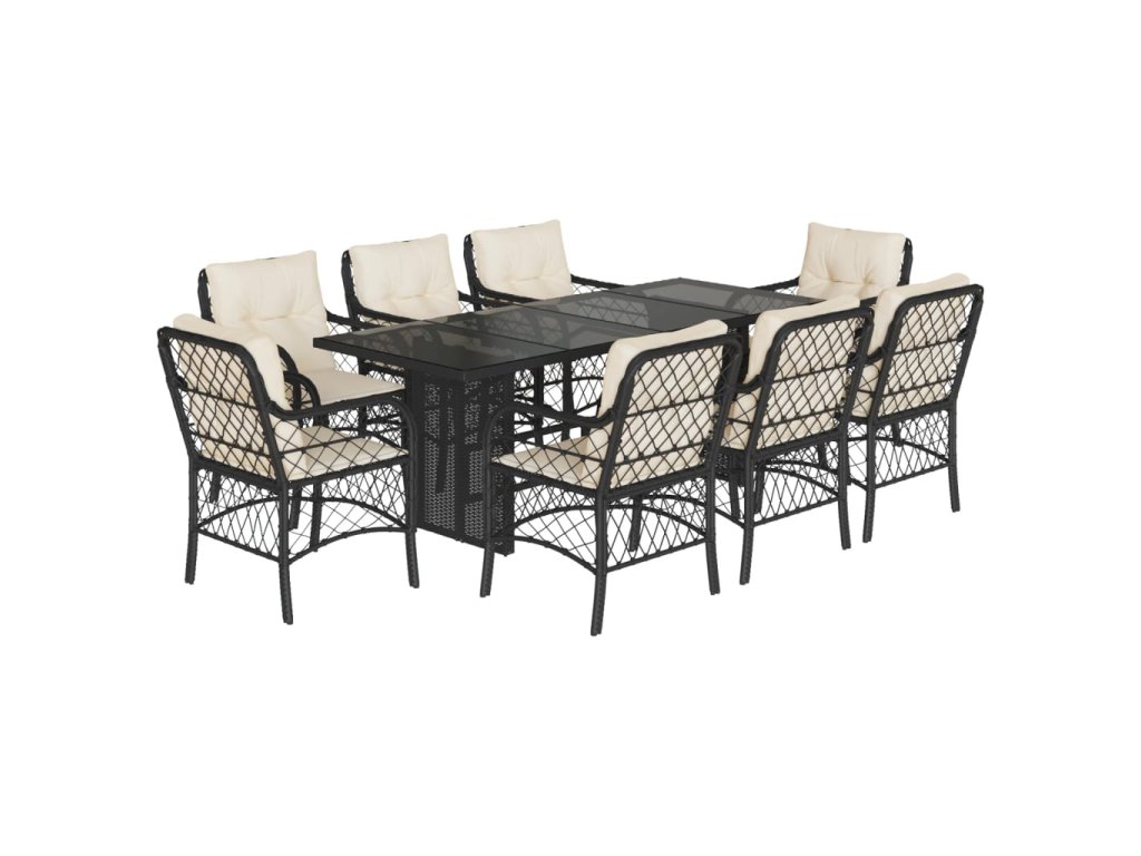 - Materiál: PE ratan, práškově lakovaná ocel, tvrzené sklo