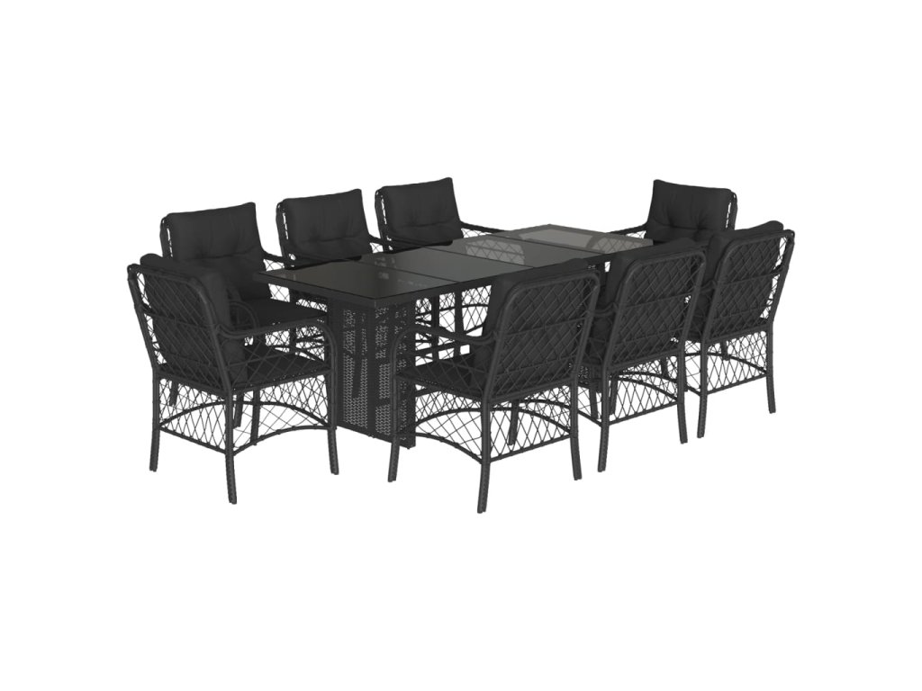 - Materiál: PE ratan, práškově lakovaná ocel, tvrzené sklo