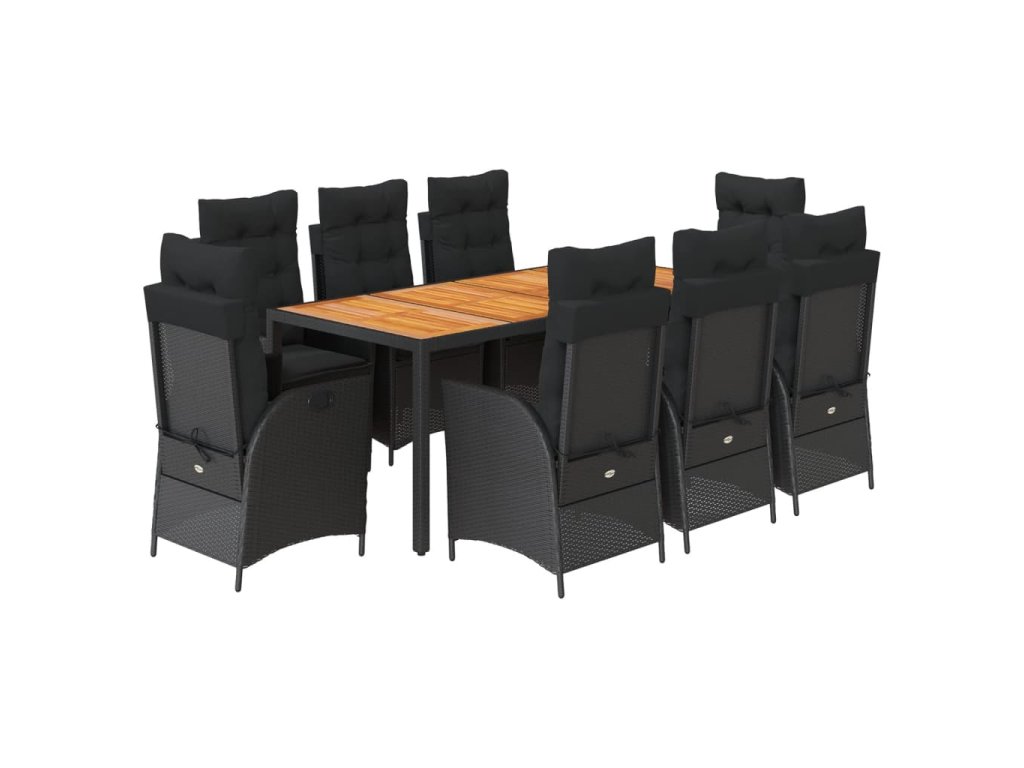 - Materiál: PE ratan, práškově lakovaná ocel, masivní akáciové dřevo s olejovou povrchovou úpravou
