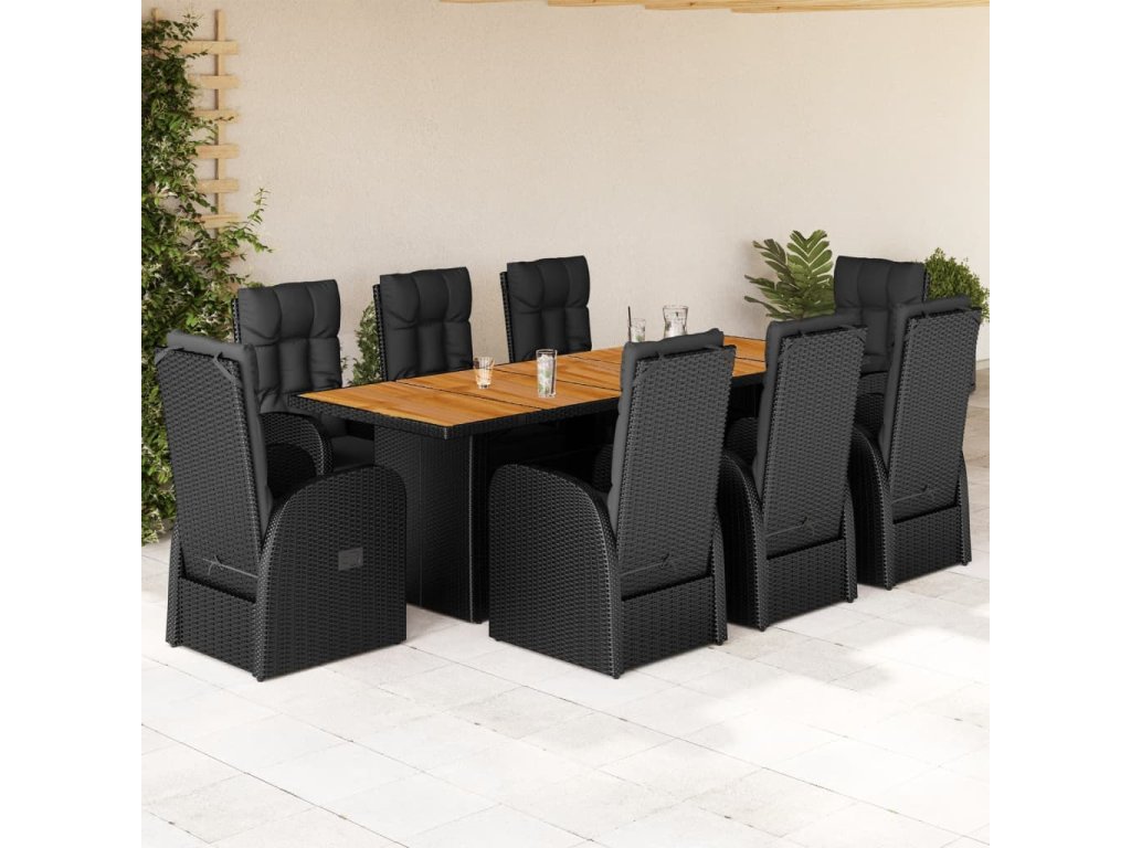 - Materiál: PE ratan, práškově lakovaná ocel, masivní akáciové dřevo s olejovou povrchovou úpravou