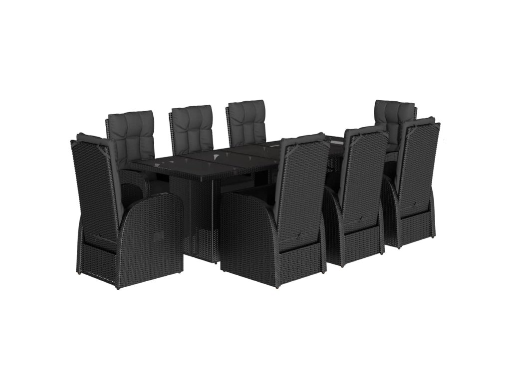 - Materiál: PE ratan, práškově lakovaná ocel, tvrzené sklo