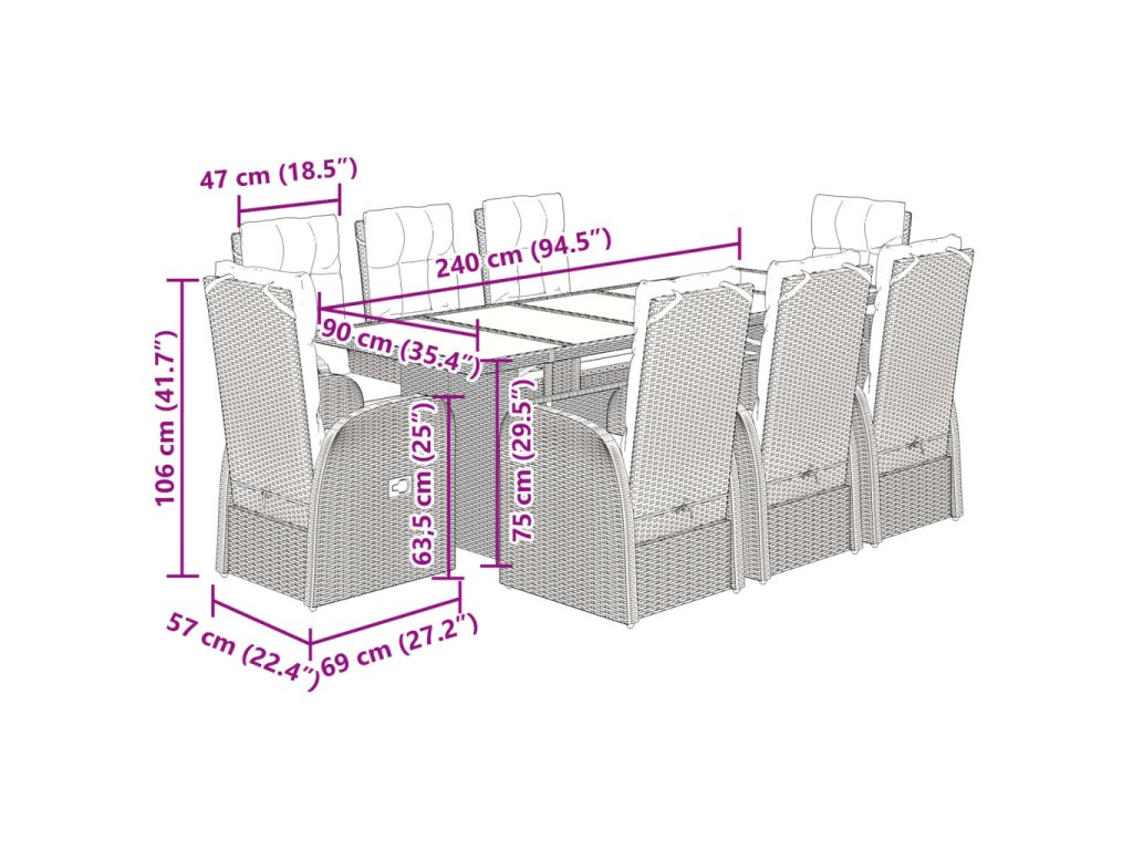Tento zahradní jídelní set je skvělou volbou pro stolování pod širým nebem nebo jen tak pro odpočívání na zahradě, dvorku či terase.