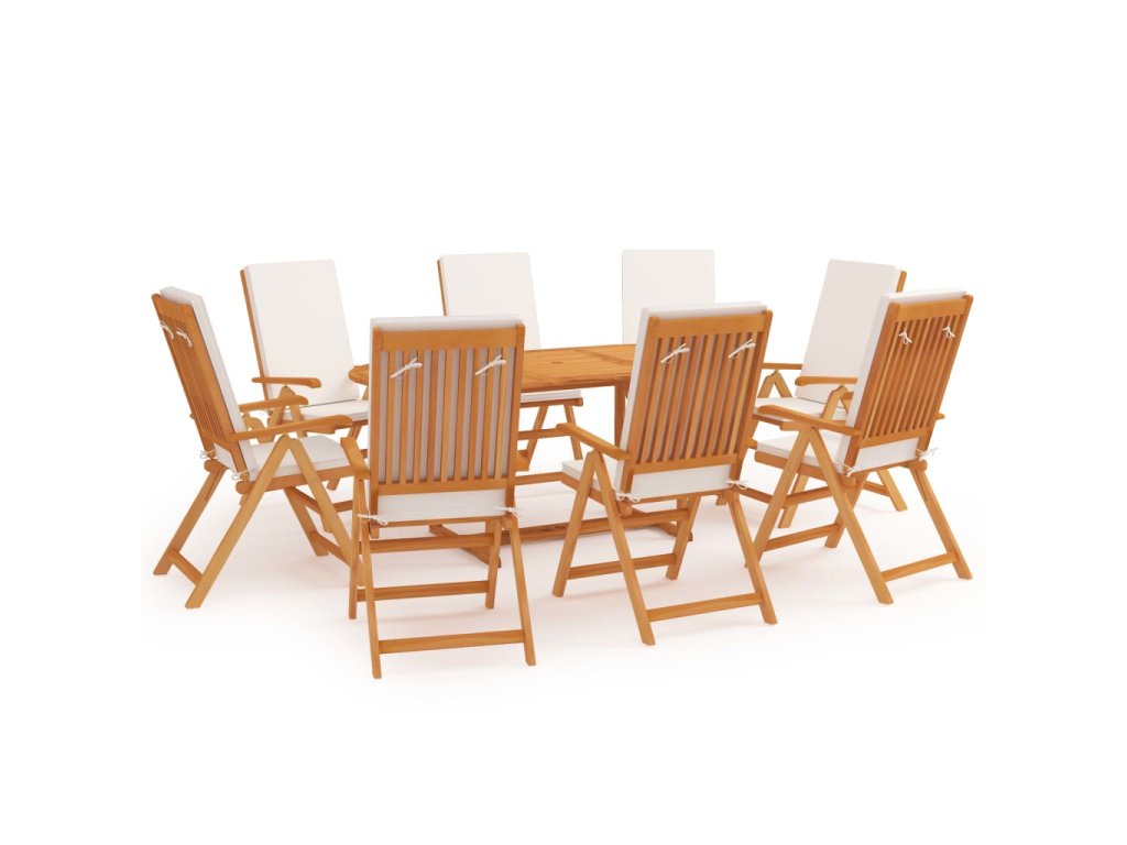 Nábytkový sestava má překrásnou povrchovou úpravu, která dřevu dodává hřejivý odstín. Ve stolu se nachází otvor na slunečník, abyste se mohli chránit před sluncem. Opěradla židlí lze nastavit do 5 poloh, takže vám nic nebrání najít si tu nejpohodlnější pozici. Židle mají navíc skládací design, aby vám zbytečně nepřekážely, když je zrovna nepoužíváte. Lehká konstrukce usnadňuje jejich přesouvání. Hustě polstrované podušky přispívají k ještě většímu pohodlí a mají snímatelné potahy pro jednodušší praní. Celá sada nábytku vám poskytne maximální komfort a zpříjemní vám čas strávený s vaší rodinou a přáteli. K očištění vám přitom postačí navlhčený hadřík.