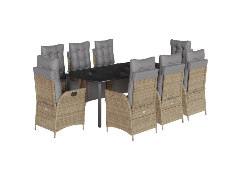 - Pohodlné sezení: Tento venkovní nábytek se silně polstrovanými poduškami a polštáři nabízí pohodlné sezení.