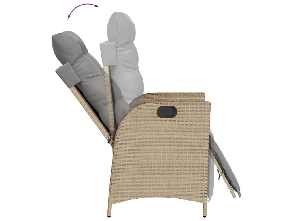 - Nastavitelné opěradlo a opěrka nohou: Tato zahradní židle je opatřena rukojetí. Zatáhnutím za ni můžete opěradlo a opěrku nohou nastavit do libovolné polohy. Stejně tak je můžete rychle vrátit do původní pozice.