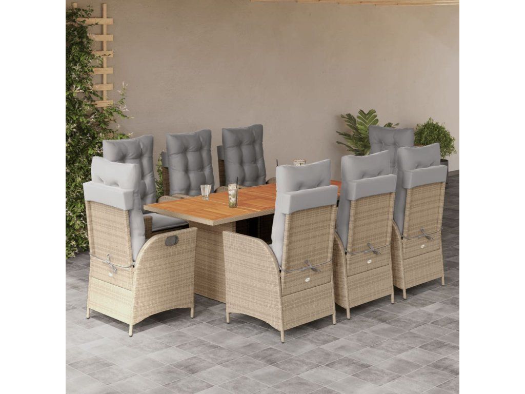 - Materiál: PE ratan, práškově lakovaná ocel, masivní akáciové dřevo s olejovou povrchovou úpravou