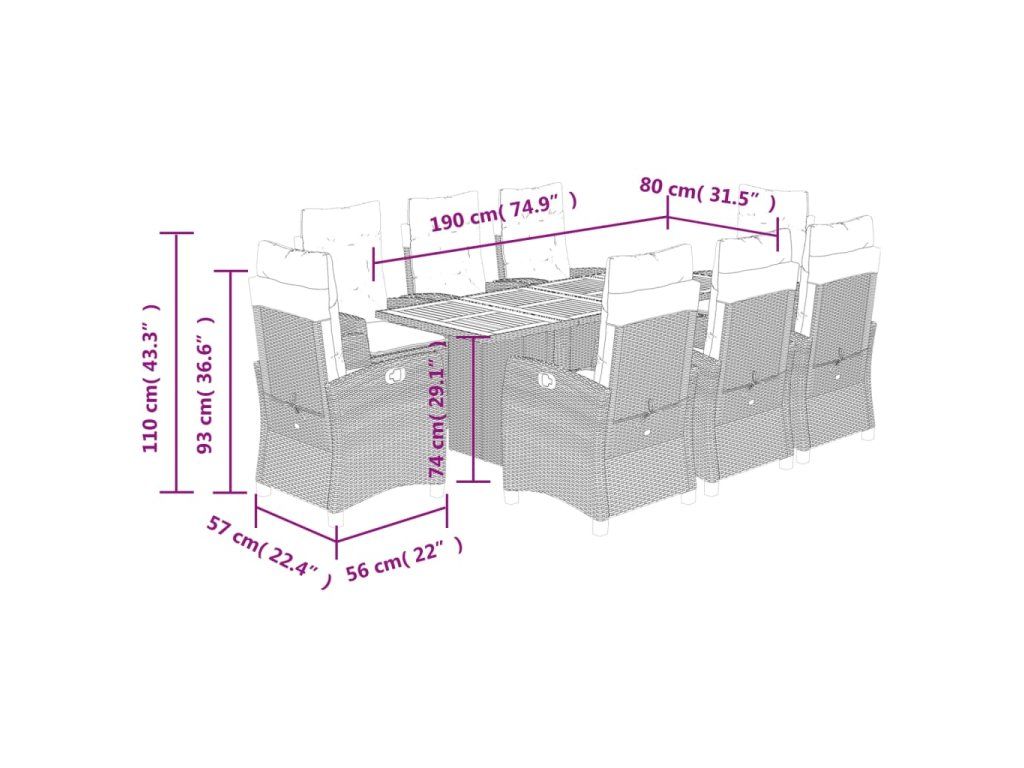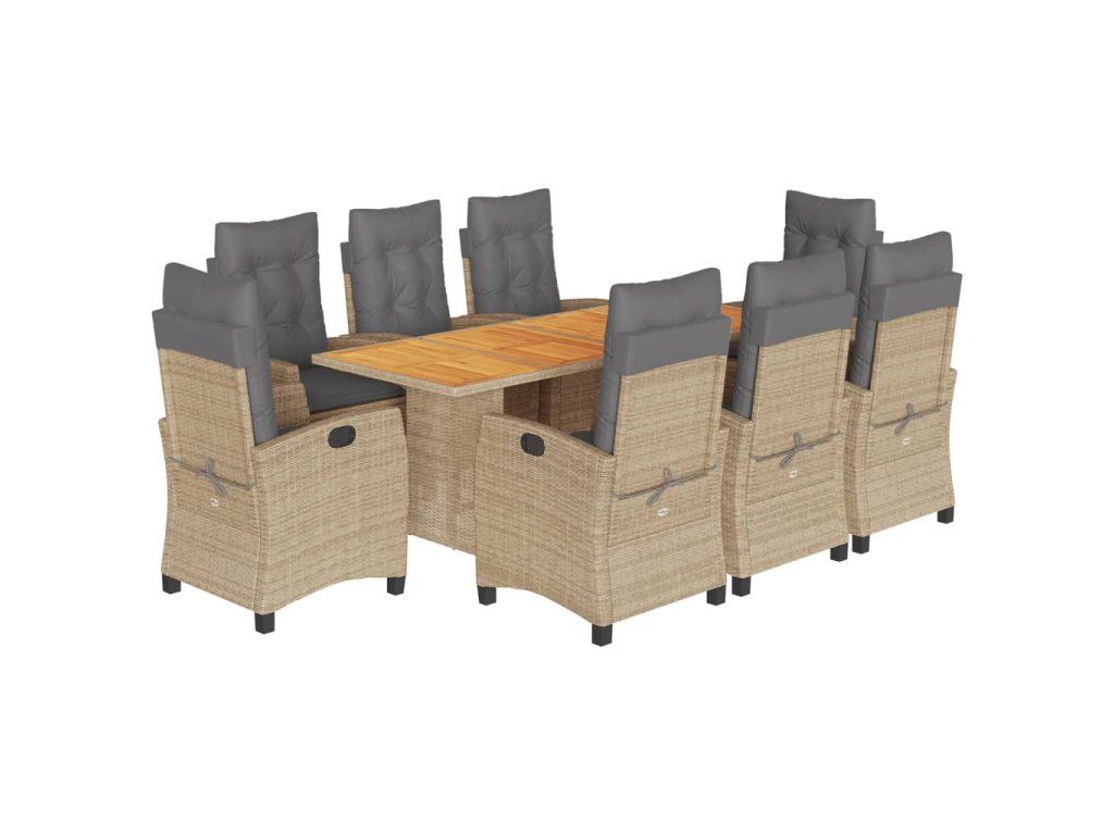 - Materiál: PE ratan, práškově lakovaná ocel, masivní akáciové dřevo s olejovou povrchovou úpravou