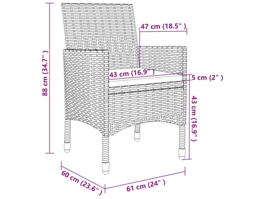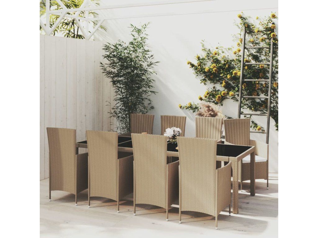 Tento zahradní jídelní set má práškově lakovaný ocelový, který dodává stolu a židlím na stabilitě a odolnosti. Set venkovního nábytku je zhotovený z PE ratanu odolného vůči povětrnostním vlivům, takže se snadno čistí. Podušky lze sejmout, což usnadňuje jejich čištění. Silné podušky vám navíc při sezení poskytnou větší pohodlí.