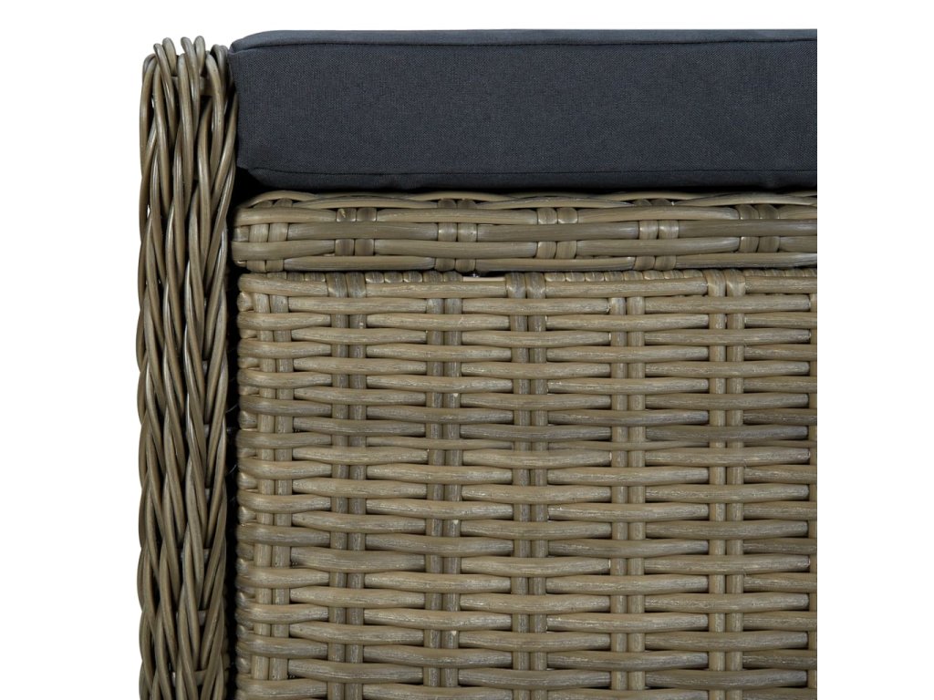 - Materiál: kulatý PE ratan, práškově lakovaná ocel, masivní akáciové dřevo s olejovaným povrchem