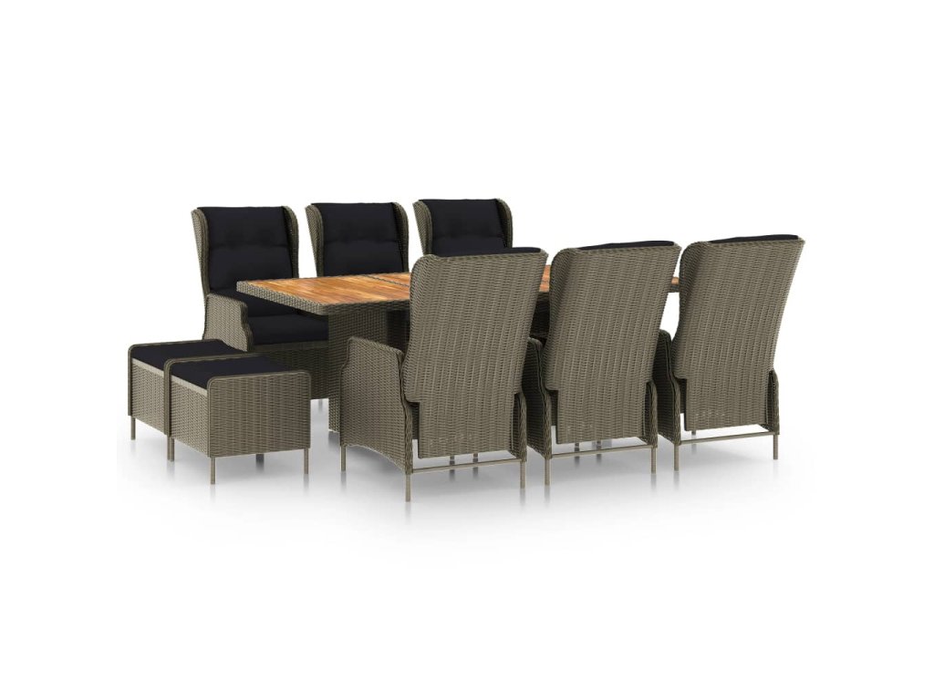 Zahradní nábytek je vyrobený z lehkého kulatého PE ratanu, který nevyžaduje téměř žádnou údržbu a snadno se čistí vlhkým hadříkem. Skvěle se proto hodí pro venkovní použití. Křesla i stůl mají rám z práškově lakované oceli, což jim zajišťuje výtečnou stabilitu a odolnost. Stolní deska z masivního akáciového dřeva vám výborně poslouží k podávání večeře nebo k vystavení dekorativních předmětů. Polohovací židle s tlustými poduškami nabízí pohodlné a příjemné místo k odpočinku. Potah podušky je opatřený zipem, aby se vám lépe stahoval a pral. Mechanismus s plynovým pístem umožňuje nastavit opěradlo do různých pozic. Stisknutím bočního tlačítka můžete opěradlo sklopit a příjemně se natáhnout. Židle je jako stvořená k relaxaci, zvlášť když si položíte nohy na sladěnou podnožku, kterou můžete přesouvat podle vašich představ.