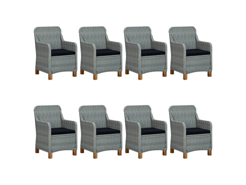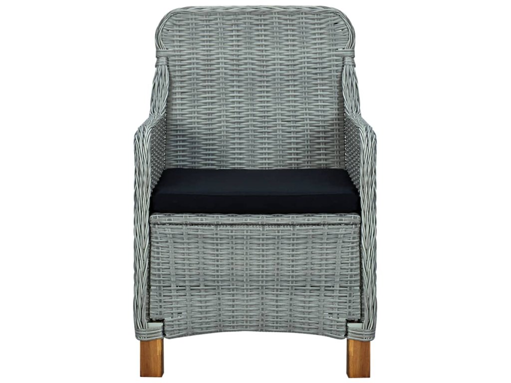 Zahradní nábytek je vyrobený z kulatého PE ratanu, který nevyžaduje téměř žádnou údržbu a snadno se čistí vlhkým hadříkem. Skvěle se proto hodí pro venkovní použití. Křesla i stůl mají rám z práškově lakované oceli, což jim zajišťuje výtečnou stabilitu a odolnost. Robustní stolní deska vám výborně poslouží k odkládání nebo vystavení nejrůznějších věcí. Hustě polstrované podušky vám při odpočinku poskytnou maximální pohodlí. Jejich potahy jsou opatřené zipem, aby se vám lépe stahovaly a praly. Nohy z masivního akáciového dřeva židlím dodávají na pevnosti a lepší rovnováze. Nábytek má lehkou konstrukci, takže ho můžete bez námahy přesouvat.