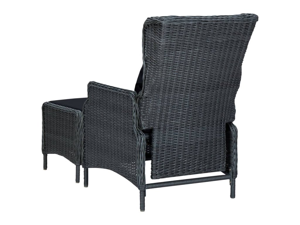 Zahradní nábytek je vyrobený z lehkého kulatého PE ratanu, který nevyžaduje téměř žádnou údržbu a snadno se čistí vlhkým hadříkem. Skvěle se proto hodí pro venkovní použití. Křesla i stůl mají rám z práškově lakované oceli, což jim zajišťuje výtečnou stabilitu a odolnost. Skleněná stolní deska dodá vašemu venkovnímu bydlení nádech luxusu a výborně vám poslouží k podávání večeře nebo k vystavení dekorativních předmětů. Polohovací židle s tlustými poduškami nabízí pohodlné a příjemné místo k odpočinku. Potah podušky je opatřený zipem, aby se vám lépe stahoval a pral. Mechanismus s plynovým pístem umožňuje nastavit opěradlo do různých pozic. Stisknutím bočního tlačítka můžete opěradlo sklopit a příjemně se natáhnout. Židle je jako stvořená k relaxaci, zvlášť když si položíte nohy na sladěnou podnožku, kterou můžete přesouvat podle vašich potřeb.