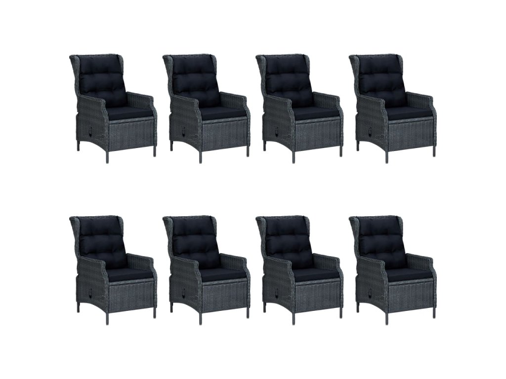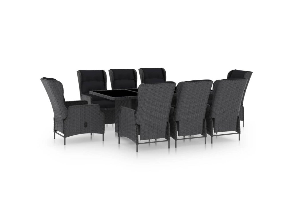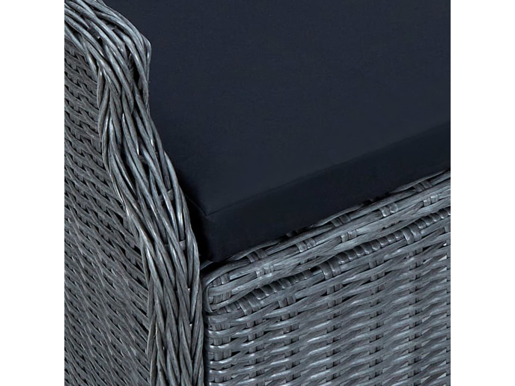 Tato sada nábytku je vyrobená z kulatého PE ratanu, který je lehký a nenáročný na údržbu, takže je ideální pro venkovní použití a lze ho snadno očistit vlhkým hadříkem. Křesla i stůl mají ocelový, práškově lakovaný rám, jsou tudíž stabilní a mají dlouhou životnost. Skleněná stolní deska vnese do vašeho venkovního prostoru luxusní šarm a je ideální pro prostření večeře s přáteli nebo pro vystavení různých dekorací. Polohovací židle se silně polstrovanými poduškami poskytují výjimečné pohodlí a jsou příjemným místem k odpočinku. Opěradlo si také můžete snadno nastavit podle vašeho přání.