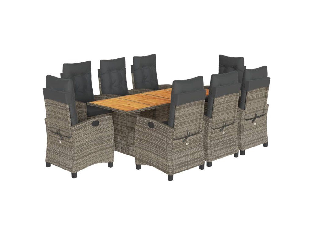 - Materiál: PE ratan, práškově lakovaná ocel, masivní akáciové dřevo s olejovou povrchovou úpravou