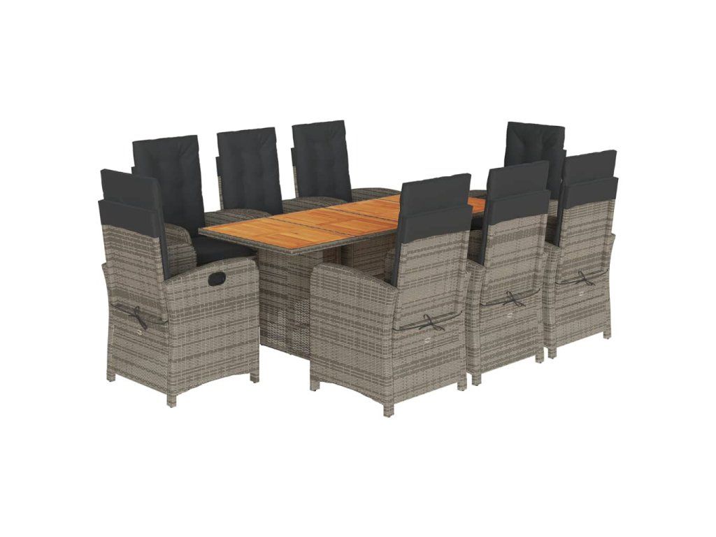 - Materiál: PE ratan, práškově lakovaná ocel, masivní akáciové dřevo s olejovou povrchovou úpravou
