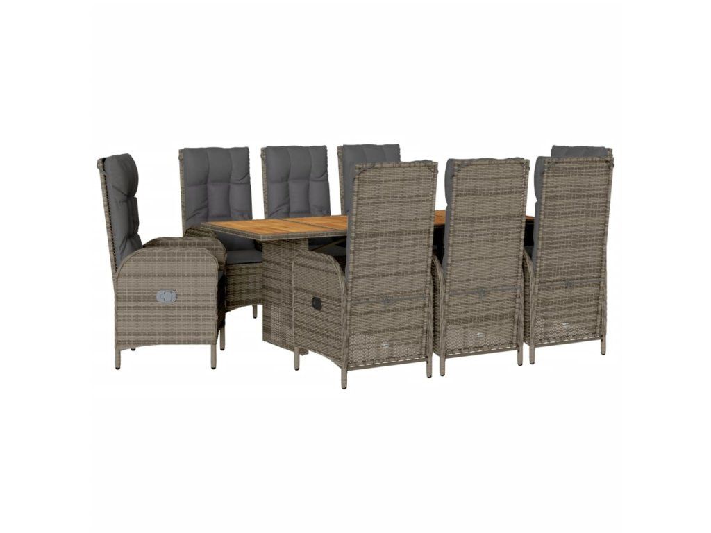 - Materiál: PE ratan, práškově lakovaná ocel, masivní akáciové dřevo s olejovou povrchovou úpravou