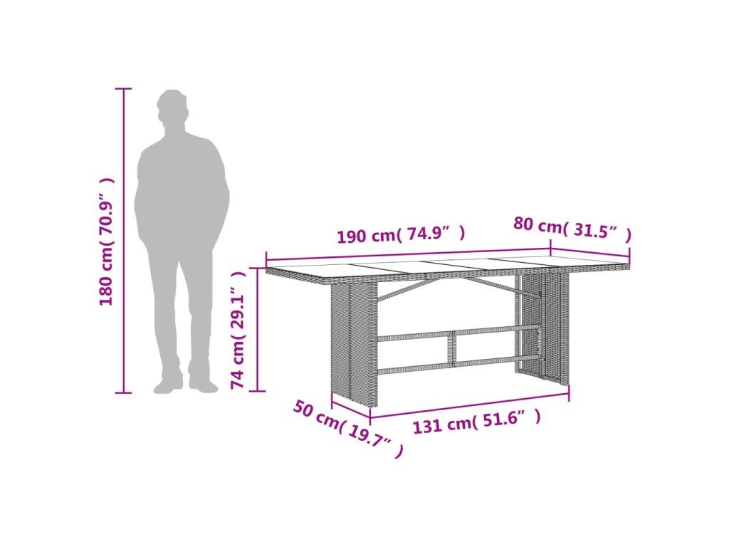 - Rozměry: 190 x 80 x 74 cm (D x Š x V)