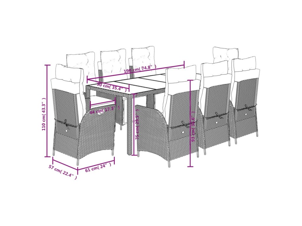 - Skleněná deska stolu: Deska venkovního stolu je zhotovena ze silného a odolného tvrzeného skla, takže ji snadno očistíte vlhkým hadříkem a zároveň do vašeho venkovního prostoru vnese nádech elegance.