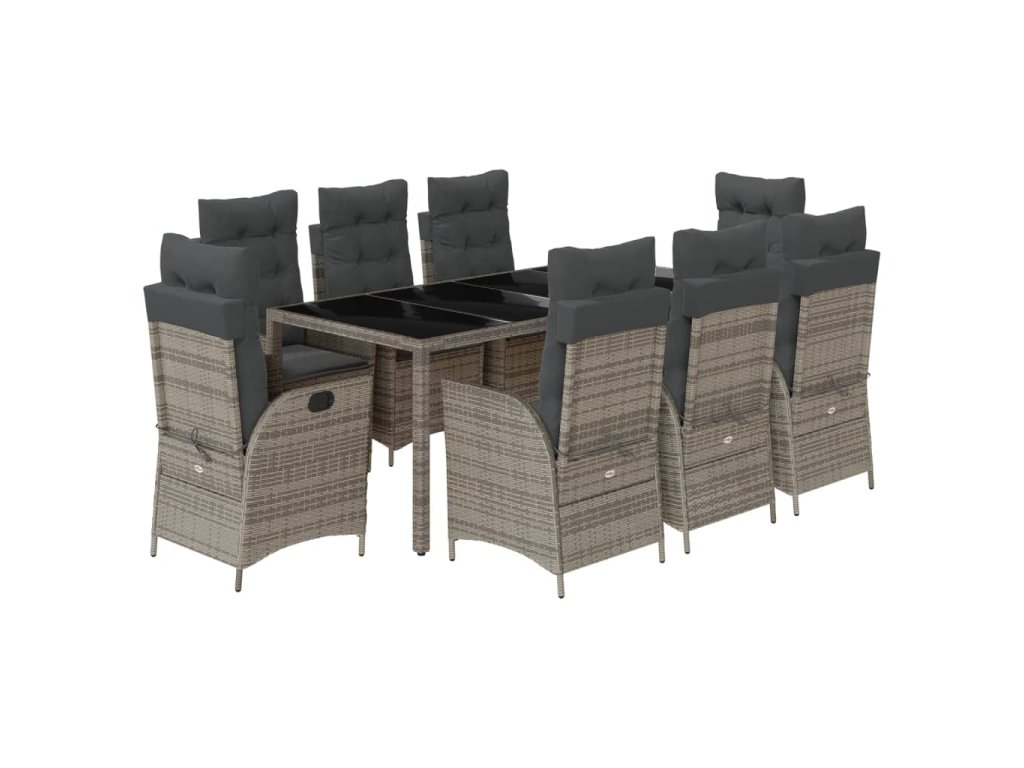 - Materiál: PE ratan, práškově lakovaná ocel, tvrzené sklo