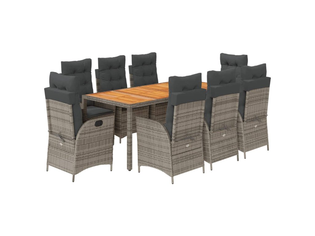 - Materiál: PE ratan, práškově lakovaná ocel, masivní akáciové dřevo s olejovou povrchovou úpravou