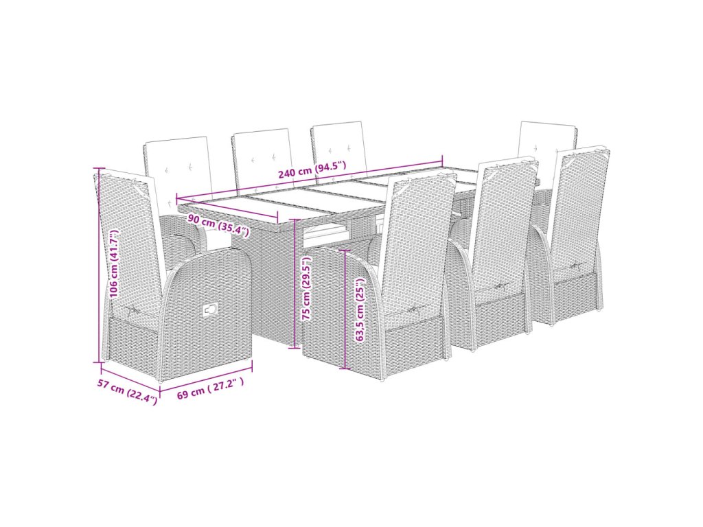 Tento zahradní jídelní set je skvělou volbou pro stolování pod širým nebem nebo jen tak pro odpočívání na zahradě, dvorku či terase.