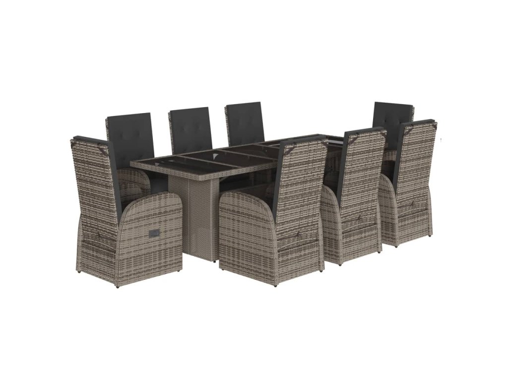 - Materiál: PE ratan, práškově lakovaná ocel, tvrzené sklo
