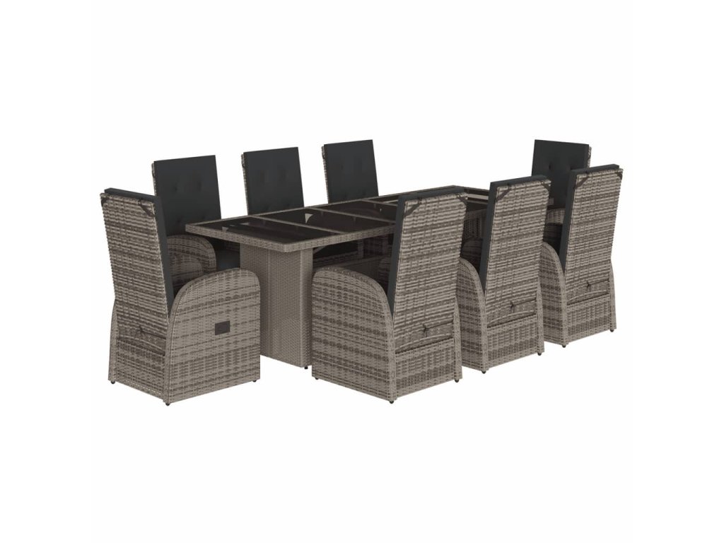 - Materiál: PE ratan, práškově lakovaná ocel, tvrzené sklo