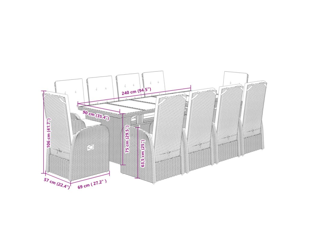 - Rozměry: 240 x 90 x 75 cm (D x Š x V)