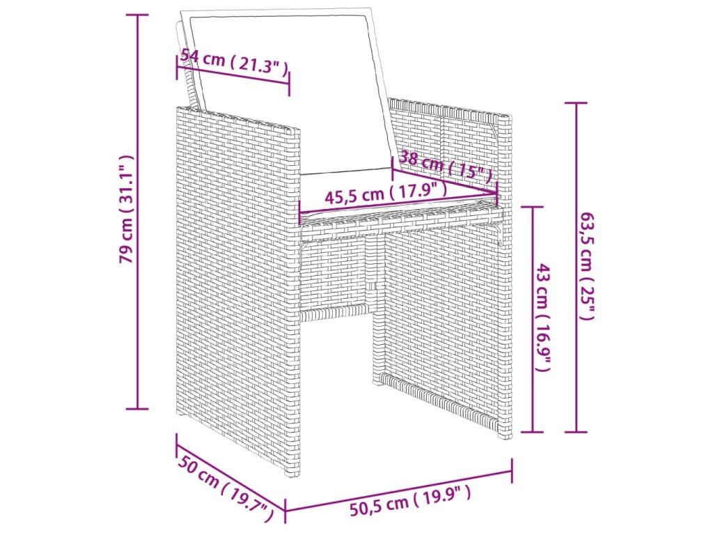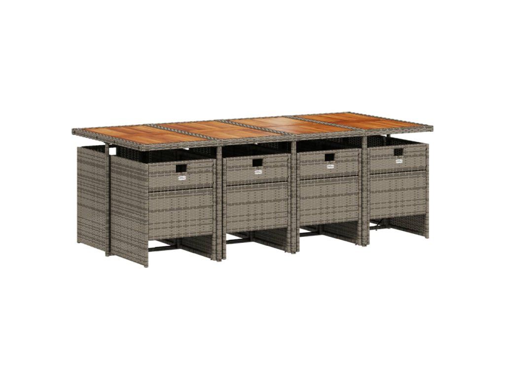 - Materiál: PE ratan, práškově lakovaná ocel, masivní akáciové dřevo s olejovou povrchovou úpravou