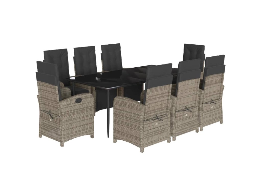 - Materiál: PE ratan, práškově lakovaná ocel, tvrzené sklo