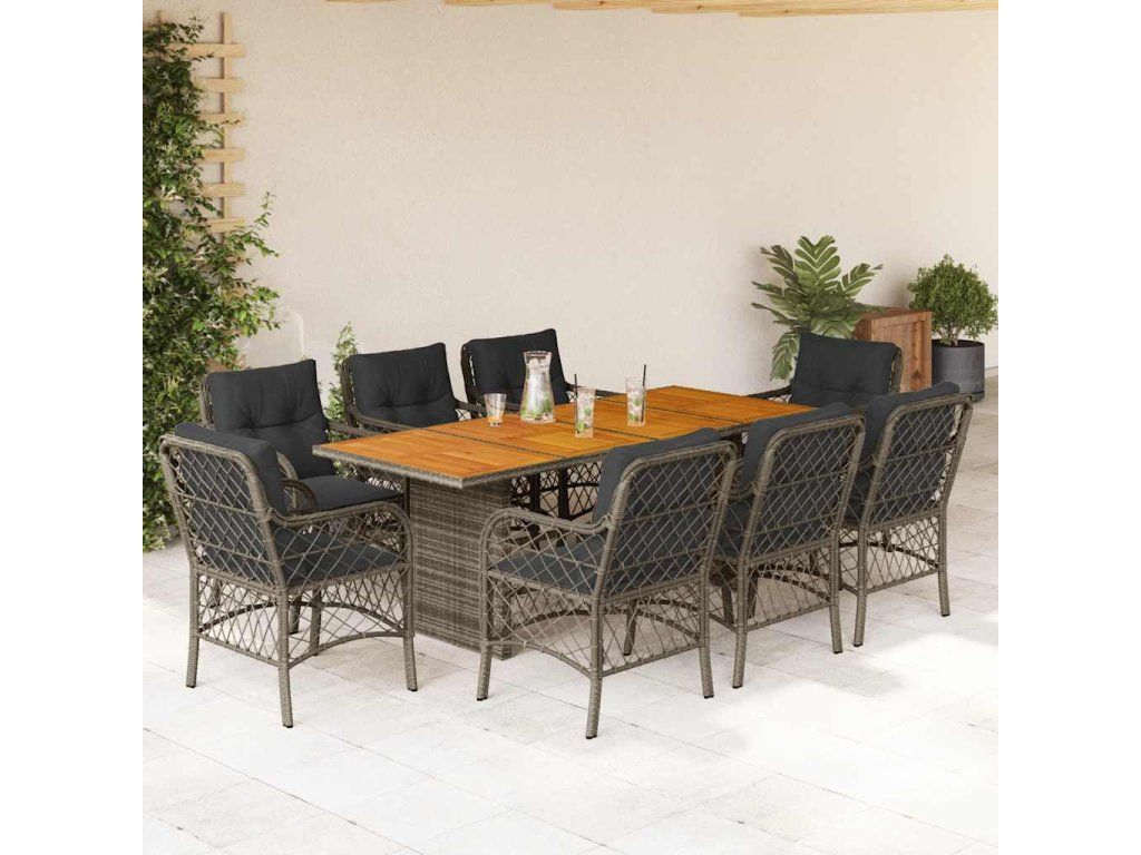- Materiál: PE ratan, práškově lakovaná ocel, masivní akáciové dřevo