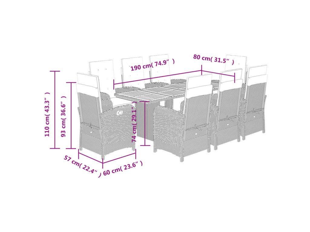 - Materiál: PE ratan, práškově lakovaná ocel, masivní akáciové dřevo
