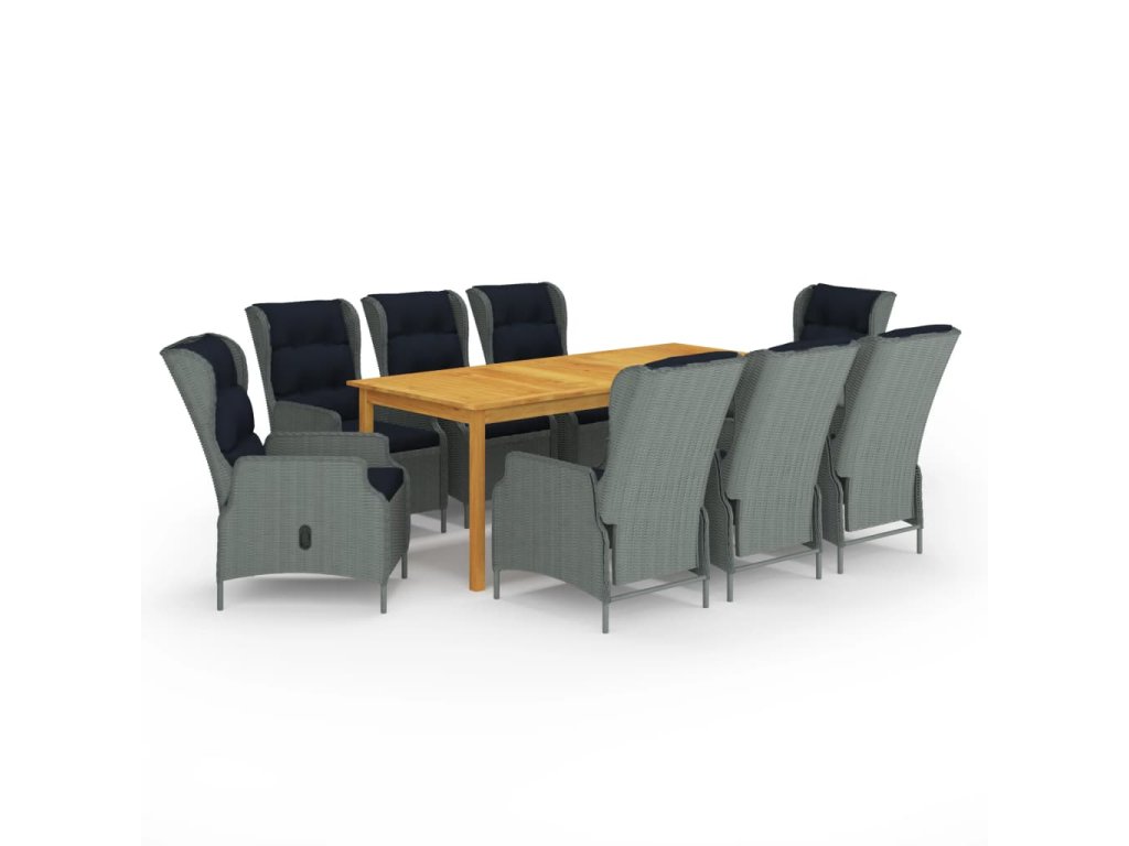 Jídelní stůl je zhotovený z masivního akáciového dřeva s olejovaným povrchem, takže je stabilní, odolný a nenáročný na údržbu. Zahradní židle mají rám z práškově lakované oceli, opletený klimaticky odolným kulatým PE ratanem, jsou tudíž odolné a snadno se čistí. Hustě polstrované podušky vám při odpočinku zaručí mimořádný komfort. Jejich potahy jsou opatřené zipem, abyste je mohli bez námahy stáhnout a oprat. Židle disponují mechanismem s plynovým pístem, umožní vám tedy také nastavit opěradlo do různých poloh. Stačí stisknout tlačítko na boku a opěradlo se sklopí do pohodlné pozice vleže. Vzhledem k lehké konstrukci lze jídelní židle jednoduše přesouvat, kam potřebujete.