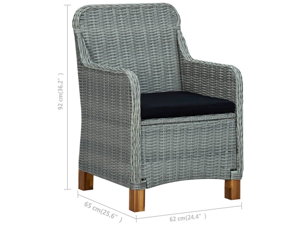 Jídelní stůl je zhotovený z masivního akáciového dřeva s olejovaným povrchem, takže je stabilní, odolný a nenáročný na údržbu. Zahradní židle mají rám z práškově lakované oceli, opletený kulatým PE ratanem, který výborně vzdoruje klimatickým vlivům. Dlouho vám proto vydrží a snadno je očistíte. Hustě polstrované podušky vám při odpočinku zaručí mimořádný komfort. Jejich potahy jsou opatřené zipem, abyste je mohli bez námahy stáhnout a oprat. Nohy z masivního akáciového dřeva přispívají k lepší stabilitě a delší životnosti. Vzhledem k jejich lehké konstrukci lze jídelní židle jednoduše přesouvat, kam potřebujete.
