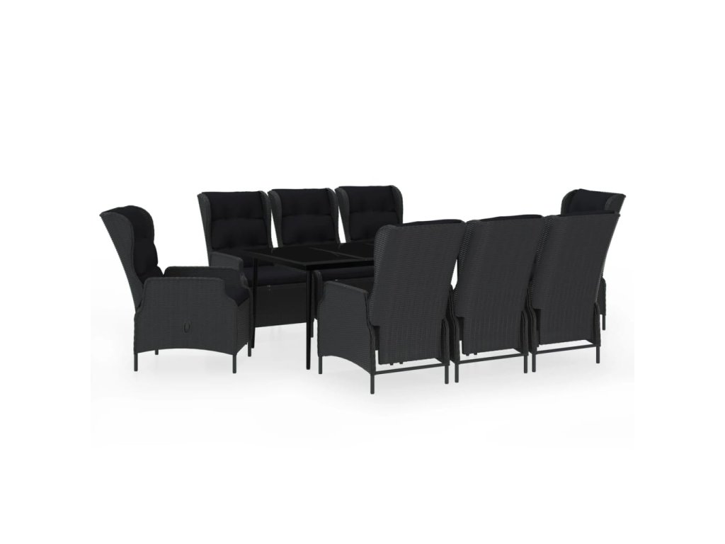 Praktický zahradní jídelní set má ocelový rám, takže je pevný a má dlouhou životnost. Polohovací židle jsou vyrobené z voděodolného PE ratanu, který nevyžaduje žádnou údržbu, hodí se proto skvěle k venkovnímu použití. Hustě polstrované podušky vám při stolování poskytnou maximální pohodlí. Potah podušky je opatřený zipem, lze ho tedy stáhnout a vyprat. Pomocí mechanismu s plynovým pístem si navíc snadno přizpůsobíte opěradlo křesla podle vlastních potřeb. Stisknutím tlačítka na boku ho sklopíte do té nejpohodlnější pozice. Hladká skleněná stolní deska, kterou jednoduše očistíte vlhkým hadříkem, je ideální k podávání jídla a pití nebo k vystavování různých dekorativních předmětů.