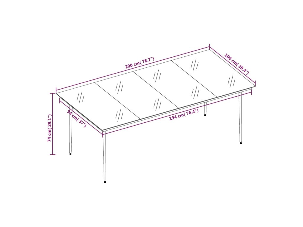 - Rozměry: 200 x 100 x 74 cm (D x Š x V)