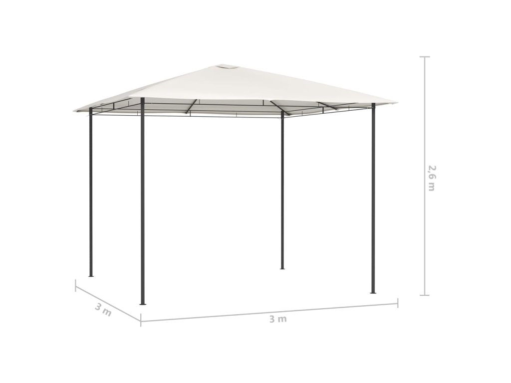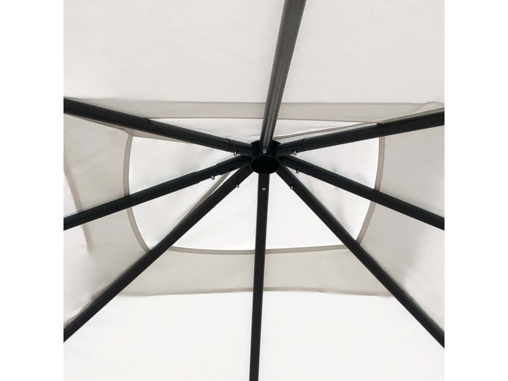 Altán má robustní ocelovou konstrukci, a proto je pevný, odolný a vhodný pro venkovní použití. Střecha vás ochrání před deštěm i žhavým sluncem, takže si můžete bez obav užívat svoje venkovní akce.