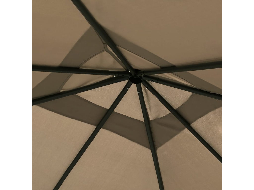 Altán má robustní ocelovou konstrukci, a proto je pevný, odolný a vhodný pro venkovní použití. Střecha vás ochrání před deštěm i žhavým sluncem, takže si můžete bez obav užívat svoje venkovní akce.